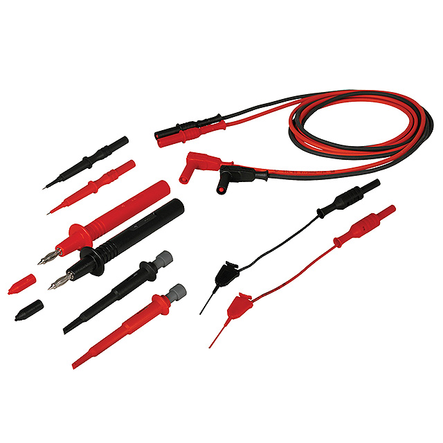 Contents: Alligator Clips, Probes, Spade Lug Adapters, Sprung Hooks, Test Leads