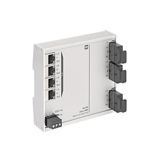 Description: HA-VIS ECON 2043GBT-AF-P - UNMANPackaging: Bulk Connector Type: RJ45, SC Mounting Type: DIN Rail Voltage - Input: 9 ~ 60VDC Type: Switch - Unmanaged Configuration: Fixed Operating Temperature: -40°C ~ 70°C Number of Ports: 7 Ingress Protection: IP30 Copper Ports: 4 Copper Type: 10/100/1000 Fiber Ports: 3 PoE Ports: 4 |