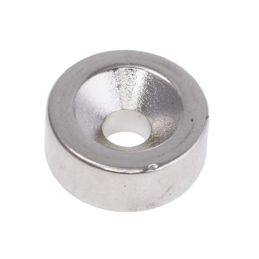| Магнит NdFeB, Шайба под потай D18 x d7.5/4.5 x 5 mm (N38), Ni+Cu+Ni (никель) Produktcode: 158767