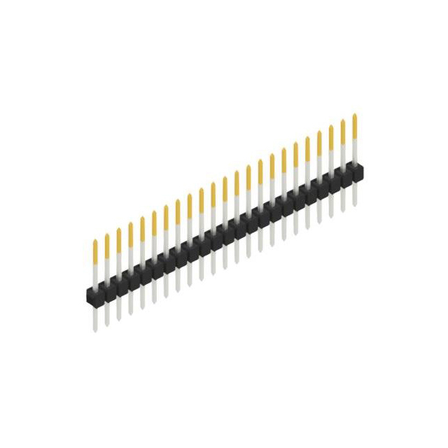 Description: ONE ROW, 0.635 MM, Packaging: Bulk, Connector Type: Header, Voltage Rating: 250VAC, Current Rating (Amps): 3A, Mounting Type: Through Hole, Number of Positions: 23, Number of Rows: 1, Style: Board to Board or Cable, Operating Temperature: -40°C ~ 163°C, Contact Type: Male Pin, Fastening Type: Push-Pull, Number of Positions Loaded: All, Termination: Solder, Material Flammability Rating: UL94 V-0, Contact Material: Copper Tin, Insulation Color: Black, Pitch - Mating: 0.100" (2.54mm), Contact Finish - Mating: Gold, Contact Finish Thickness - Mating: 7.87µin (0.200µm), Contact Finish - Post: Tin, Contact Shape: Square, Contact Length - Post: 0.228" (5.80mm), Insulation Height: 0.110" (2.80mm), Shrouding: Unshrouded, Overall Contact Length: 0.748" (19.00mm), Insulation Material: Polyamide (PA46), Nylon 4/6, Glass Filled, Contact Length - Mating: 0.409" (10.40mm).