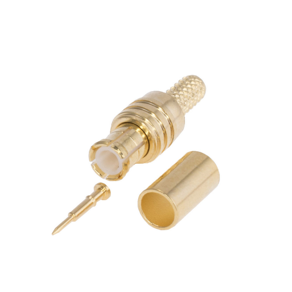 Beschreibung: MCX-розетка кутова під обтиск RG-174, (тефлон, золоч. контакт, золото. корпус)