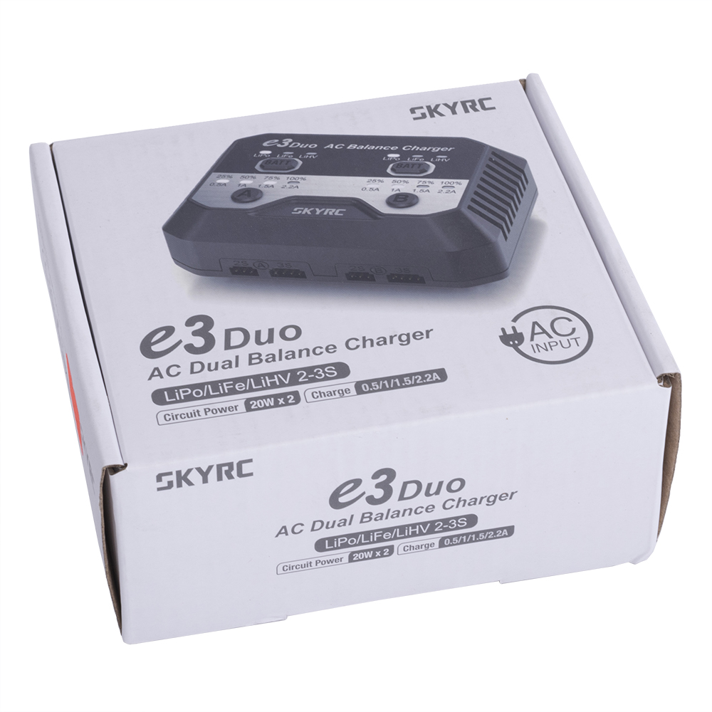 Produkte > Netzteile und Ladegeräte > Ladegeräte (für Akku) > Цифровое зарядное устройство e3 Duo (SkyRC)