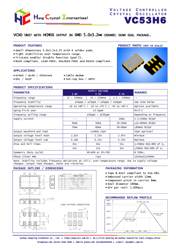 VC32H6-50.000-33KDT1JK | Suzhou Hangjing Elec&Tech Co.,Ltd |